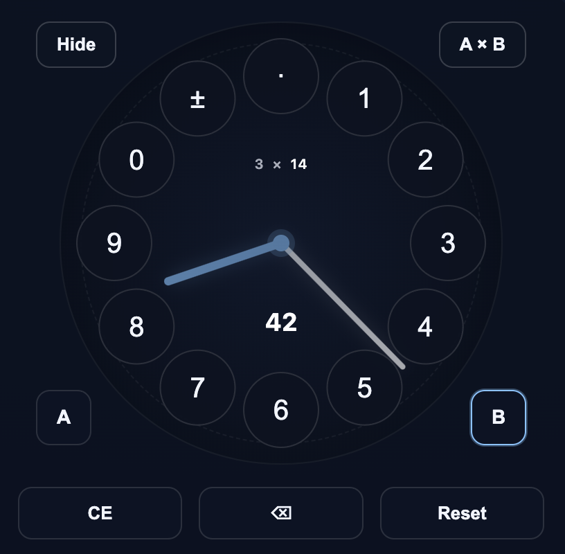 I was looking for "low cognitive load" calculators, meaning that the kid does not need even to look for the "=" or "*" signs when asking for a multiplication.